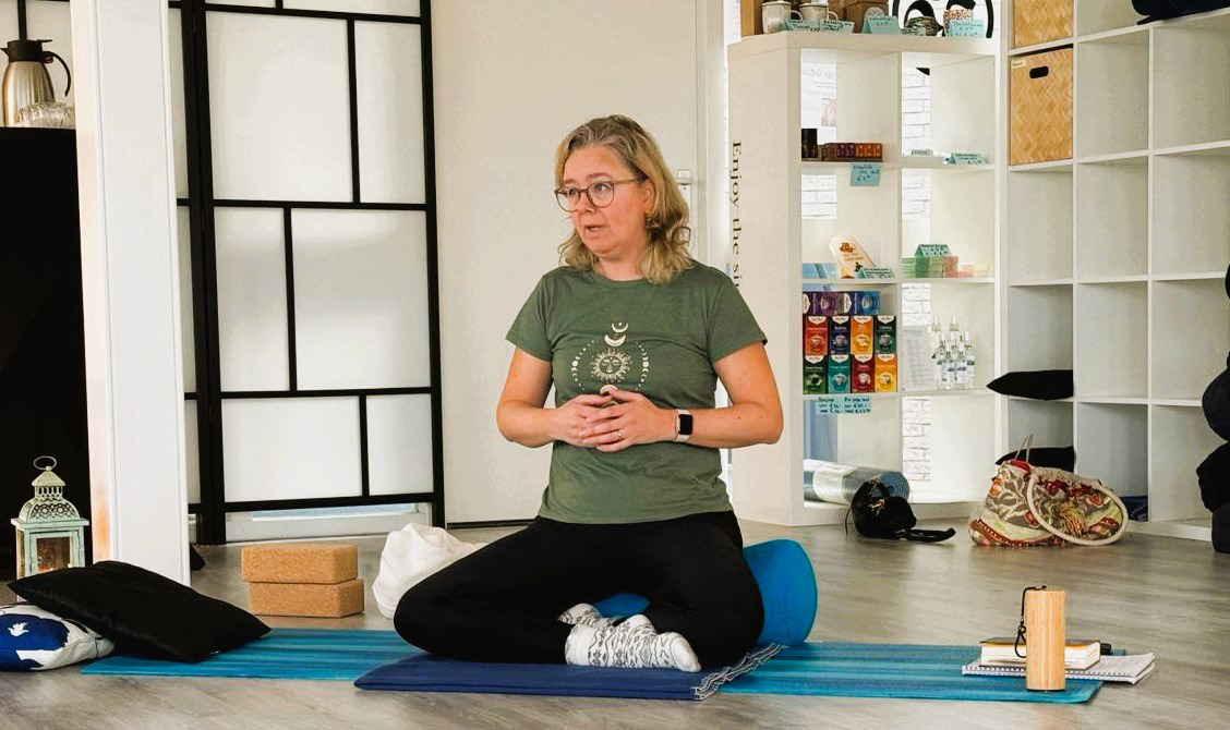 “Eigenlijk begon mijn interesse in yoga al als kind, maar dit was vooral in de vorm van interesse in spiritualiteit en interesse in de mens. In mijn latere leven kwam yoga echt op mijn pad. Vanaf 1998 werkte ik als praktijkondersteuner bij huisartsen. Op het spreekuur daar kwam ik veel mensen tegen met stress en de negatieve gevolgen daarvan, vooral bij langdurige, chronische stress. Zelf ontdekte ik bij mezelf ook de effecten van stress na een stressvolle periode in mijn leven. In 2015 begon ik met het volgen van lessen bij Christel bij Yoga Globe. Al tijdens de eerste les die ik volgde, wist ik; dit doet mij goed, ik voel verlichting.”